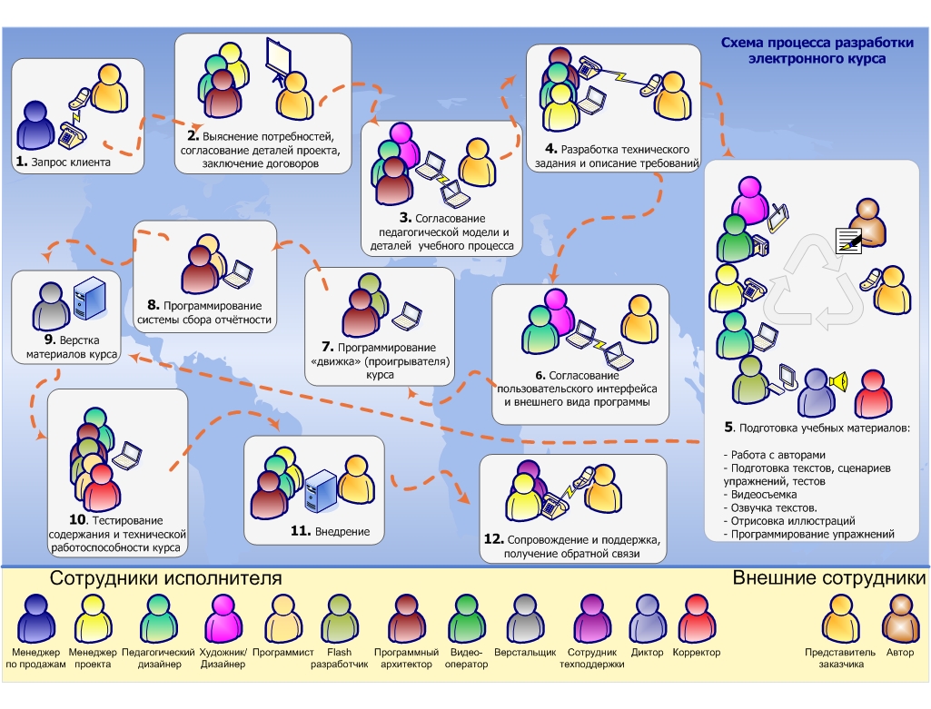Наткнулся в интернете на любопытную схему процесса разработки электронного курса, возможно будет интересно для заказчиков электронных курсов: